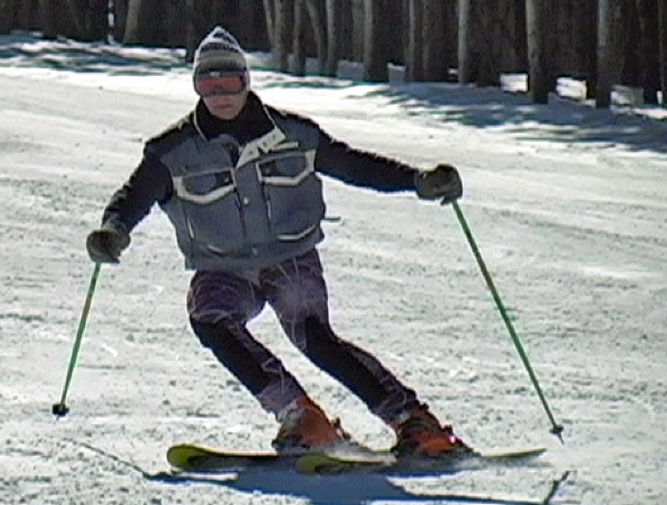 This is a rotational state in which the pelvis and torso face towards the outside of the turn. During a right turn, the pelvis and torso would be facing left of the direction the skis are pointing. It's a body position that enhances the use of angulation. It also helps pronate the outside foot, which directs pressure to the turning edge of the outside ski. When implemented skilfully, skiing countered imposes no steering force on the skis, to a degree large enough to disrupt the quality of a carved turn.